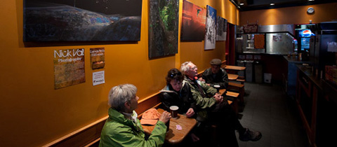 Situated smack bang in the centre of the Village Square, Moguls offers baked goods (monstrous cookies), wraps and coffee prepared fresh daily. Organic beans have led to organic ways - you'll end up using a pasta noodle for a stirring stick. The funky little patio attracts the local scenesters, which makes for great people watching, especially late night as it's open until 3 am.
